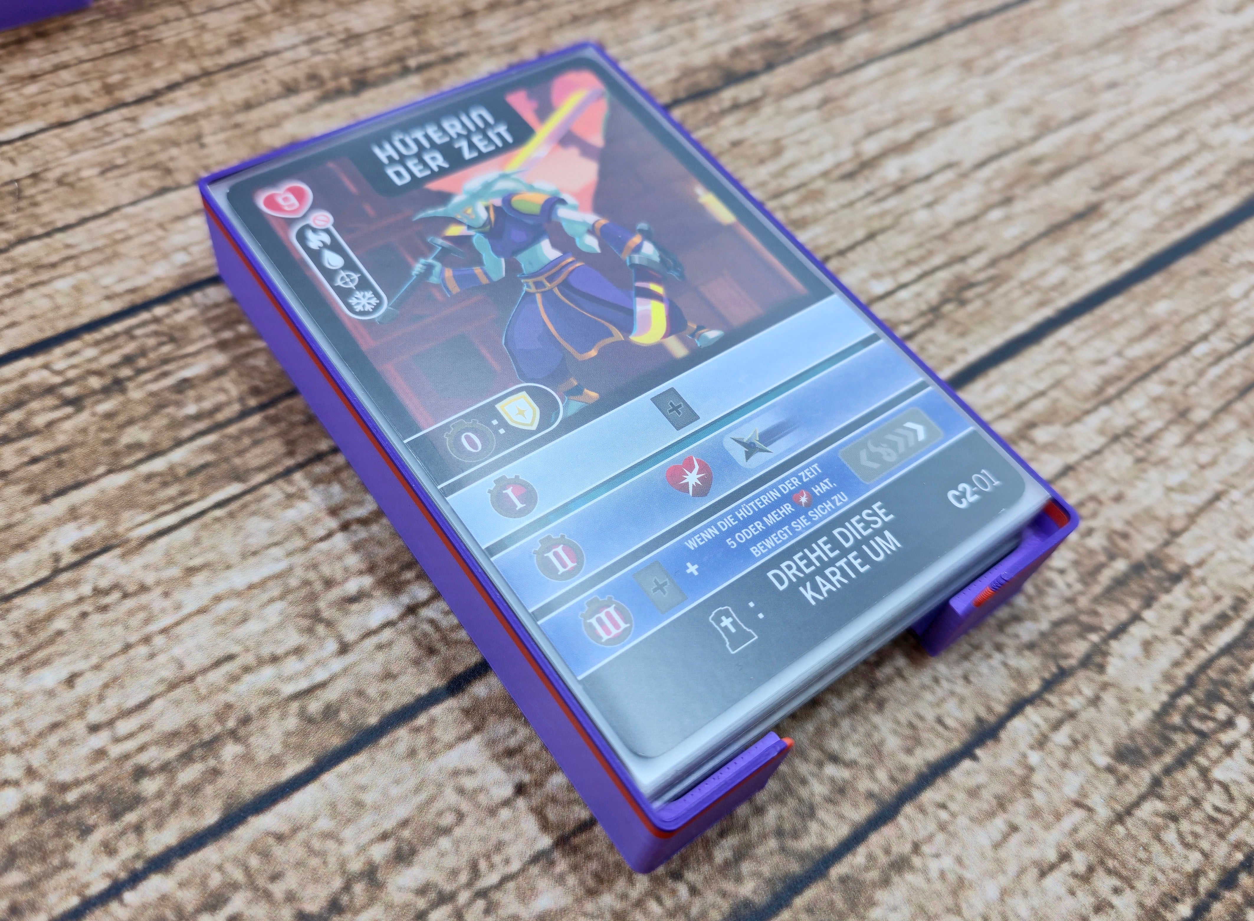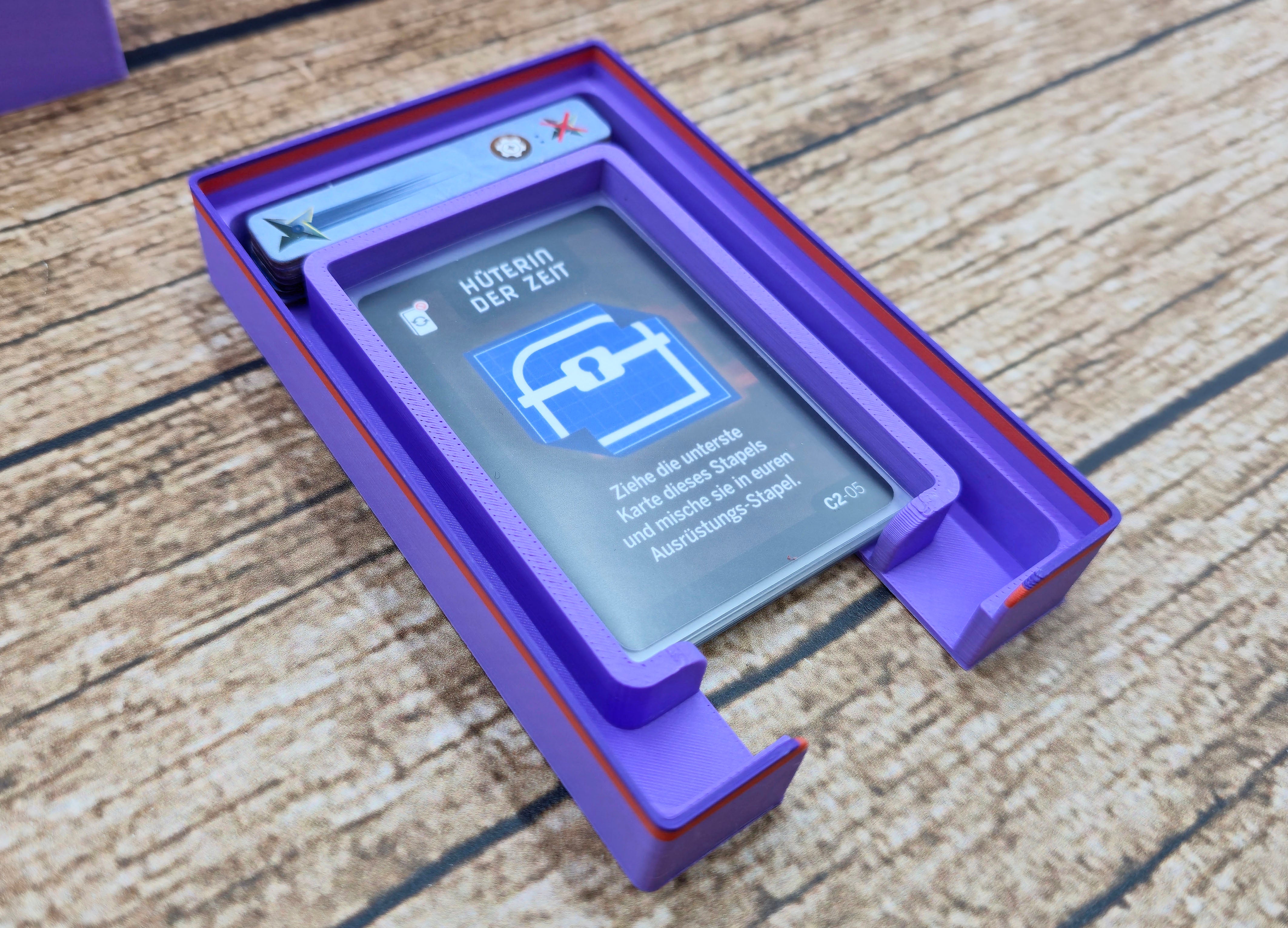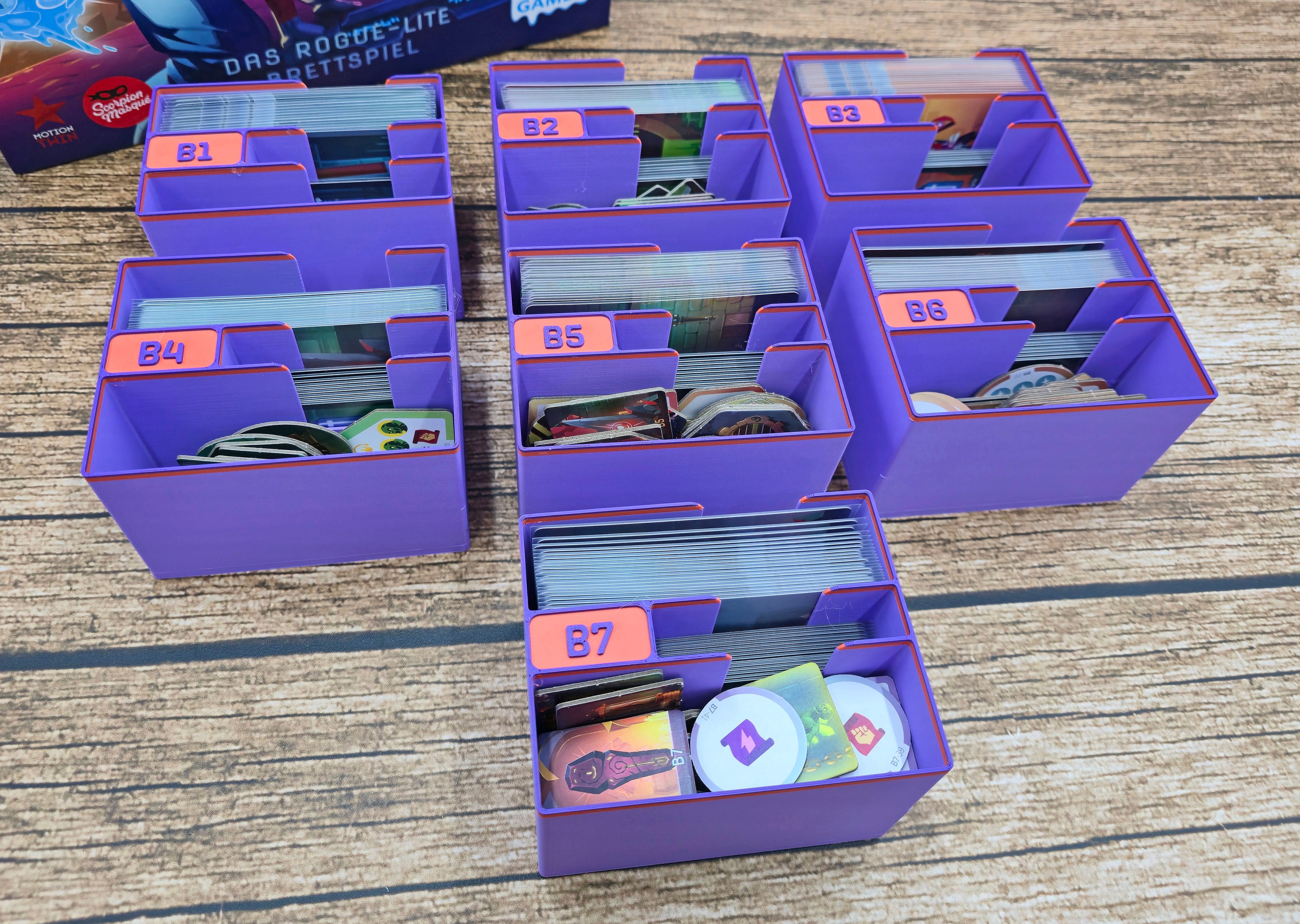 Dead Cells kam bei uns schon häufig auf den Tisch. Das mitgelieferte Tiefziehteil hat uns eigentlich gut gefallen... Nur oft kam es, weil wir viele Biome und Bosse an einem Abend spielen wollten, zu Platzproblemen. Alles in die Schachtel zurückschmeißen war keine Option. Auch mit gesleevten karten war es etwas weniger optimal. Mit unserem Insert könnt ihr die Biomkarten schnell und Platzsparend verstauen und für eine (oder viele) weitere Runden an die Seite stellen.