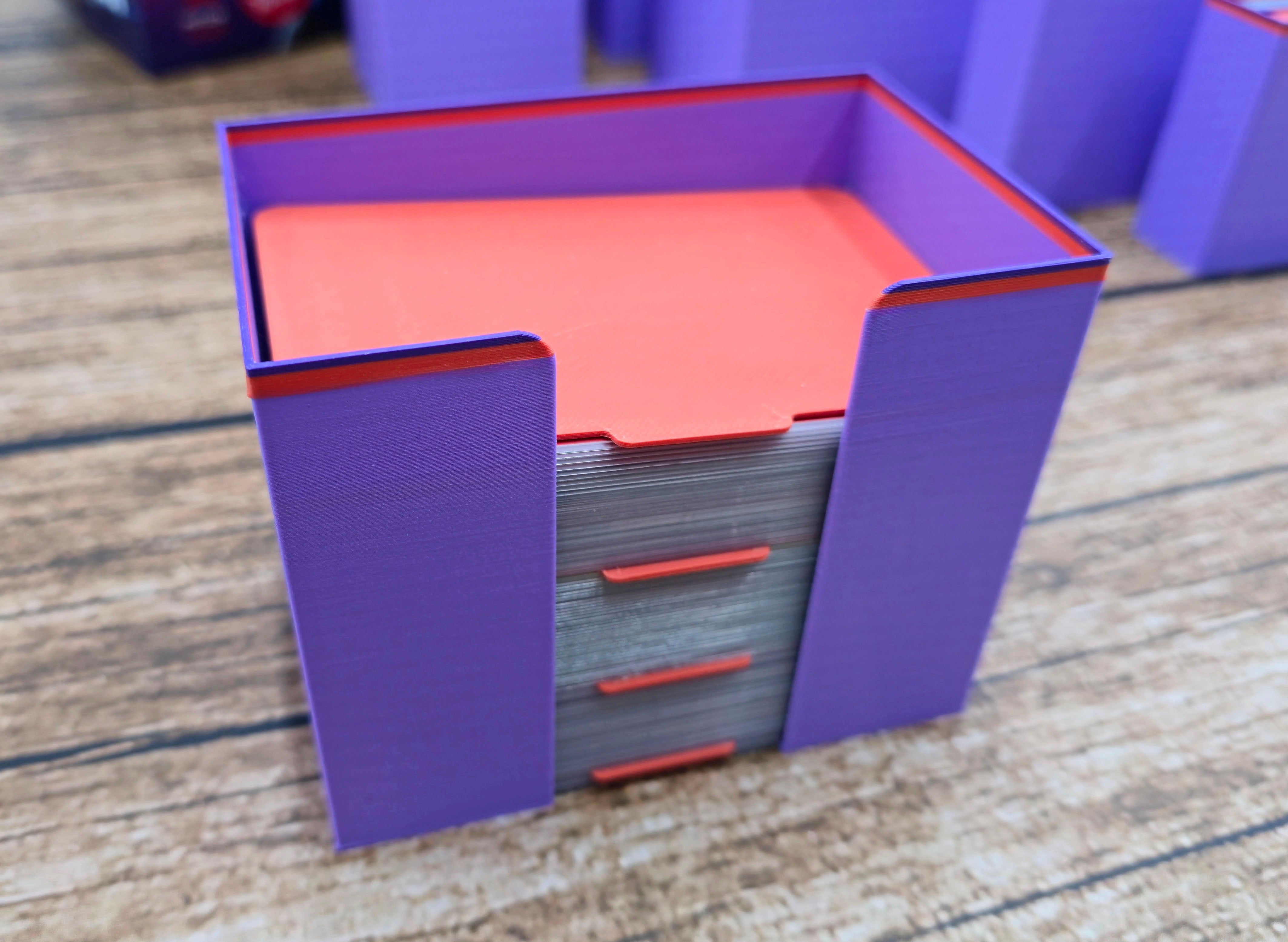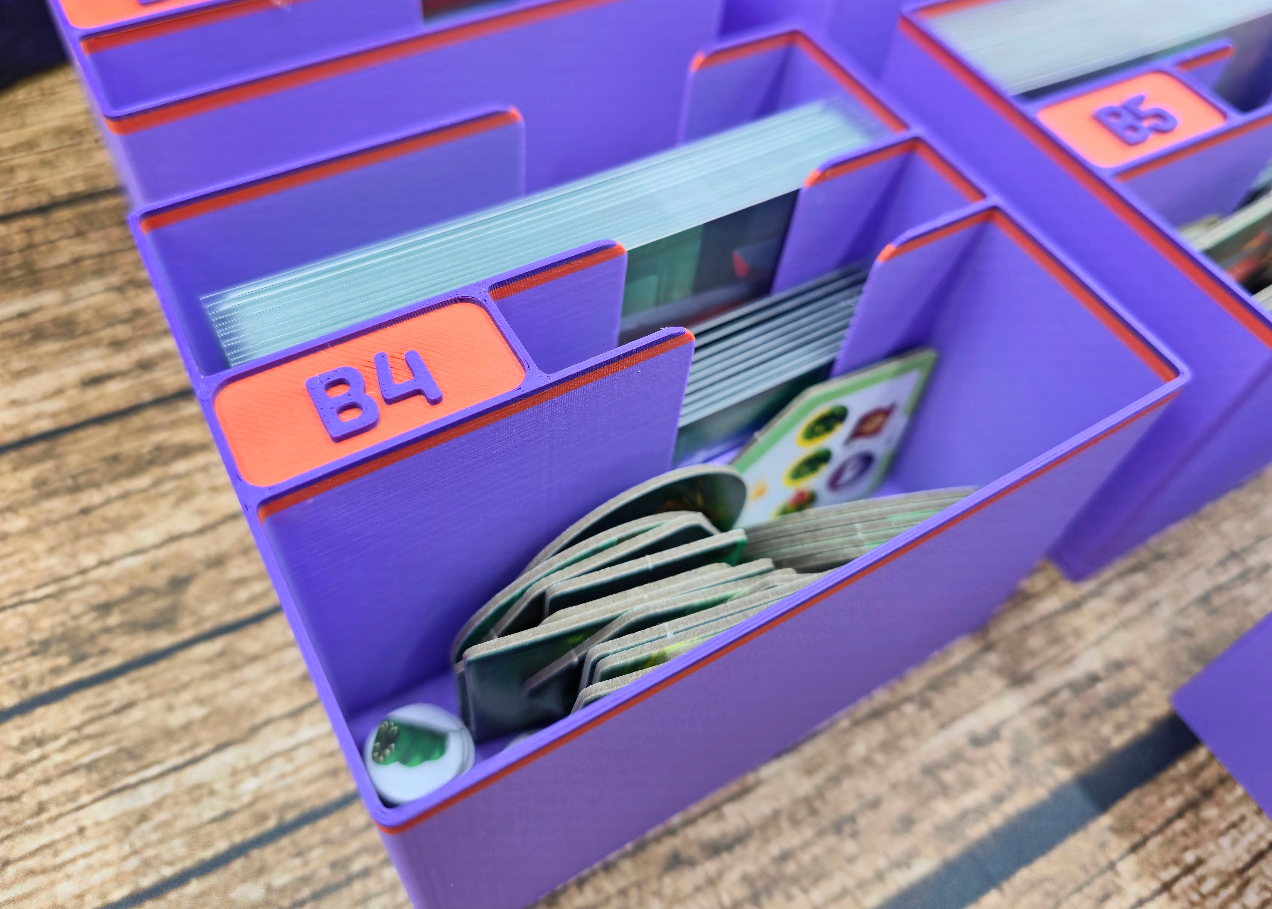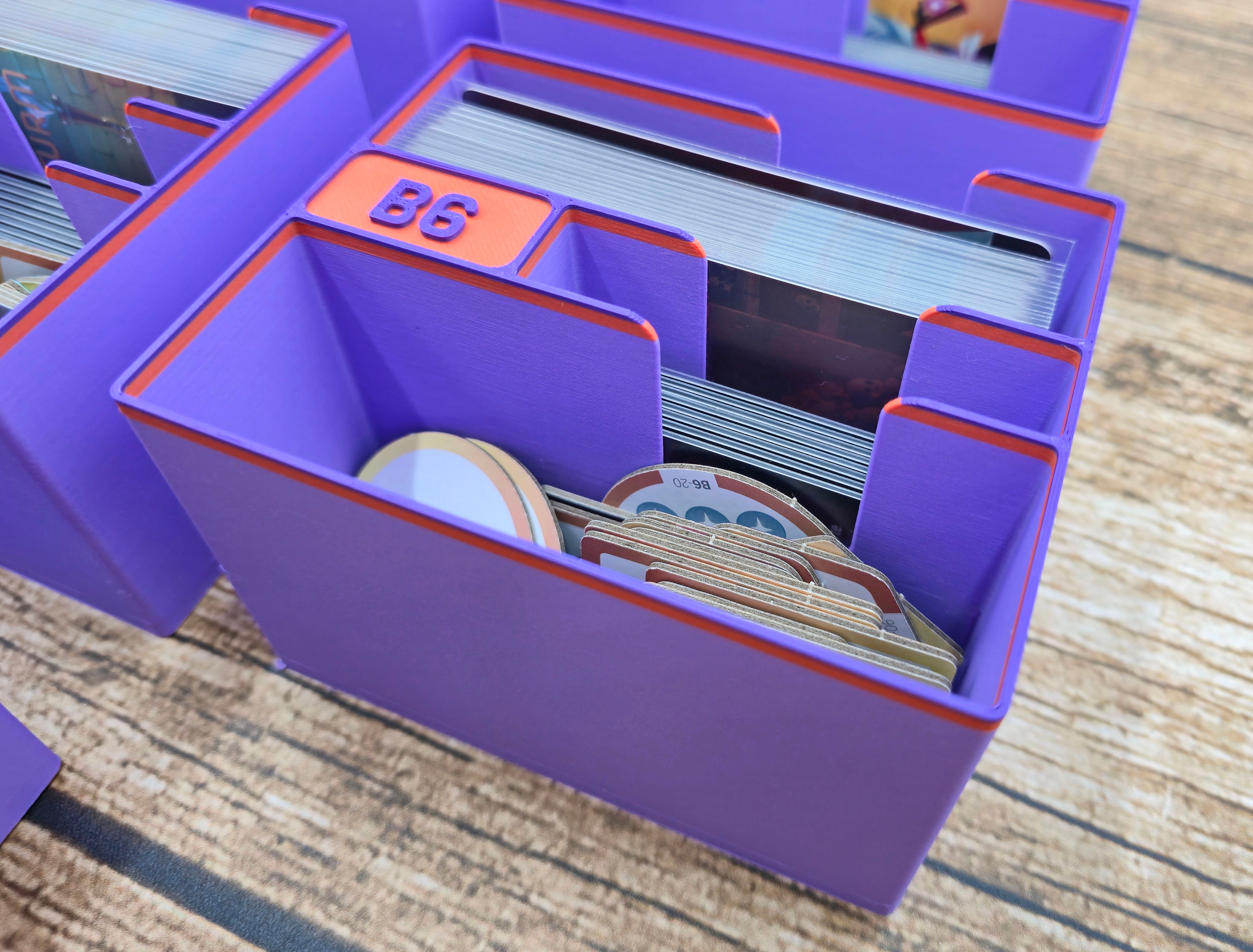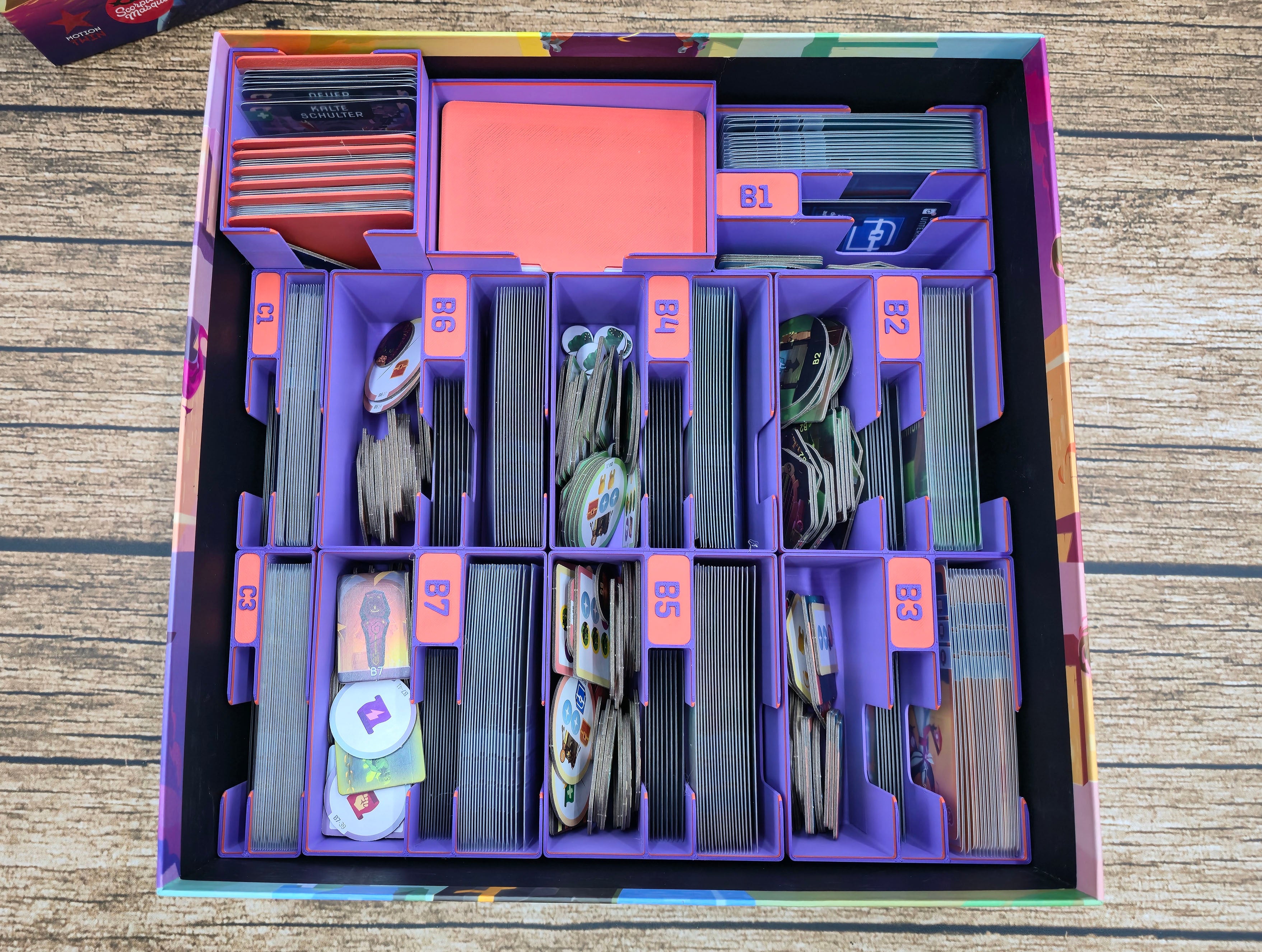 Dead Cells kam bei uns schon häufig auf den Tisch. Das mitgelieferte Tiefziehteil hat uns eigentlich gut gefallen... Nur oft kam es, weil wir viele Biome und Bosse an einem Abend spielen wollten, zu Platzproblemen. Alles in die Schachtel zurückschmeißen war keine Option. Auch mit gesleevten karten war es etwas weniger optimal. Mit unserem Insert könnt ihr die Biomkarten schnell und Platzsparend verstauen und für eine (oder viele) weitere Runden an die Seite stellen.